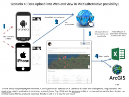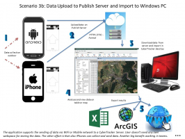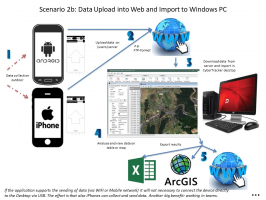- oder durch Senden der Daten per WIFi oder Mobile Netzwerk direkt aus dem Handgerät auf einen Server ins Internet. Danach müssen diese Daten per Download geladen und in die CyberTracker Desktop Software importiert werden. -> Szenario Folie 4