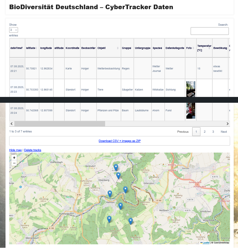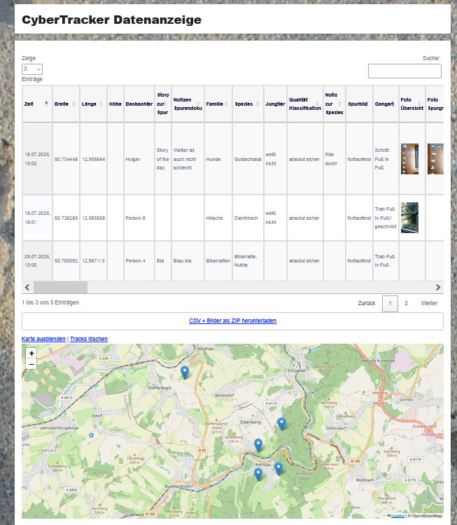- CyberTracker-Desktop Software zur komfortablen Handhabung der Ergebnisse inkl. diverser Exportmöglichkeiten